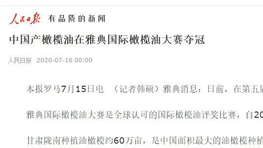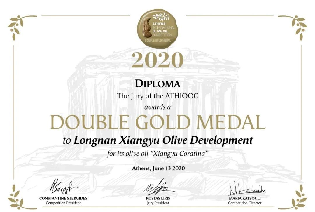 2020年在希臘國(guó)際橄欖油大賽中,隴南祥宇橄欖油又從來(lái)自全球430份橄欖油樣品中一舉奪魁,
