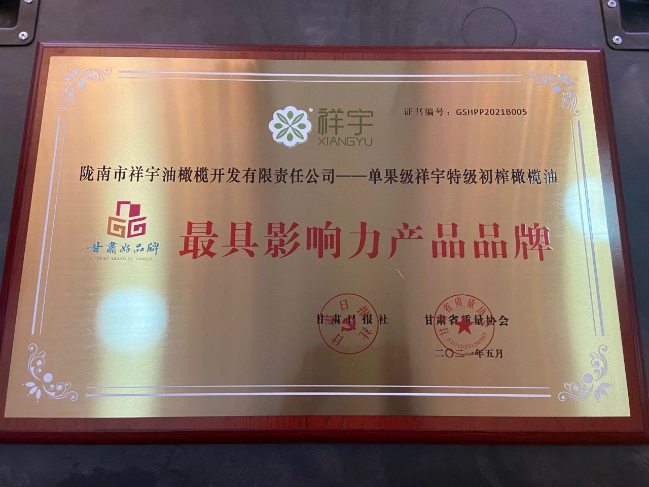 祥宇橄欖油榮獲2021“甘肅好品牌”最具影響力產(chǎn)品品牌!