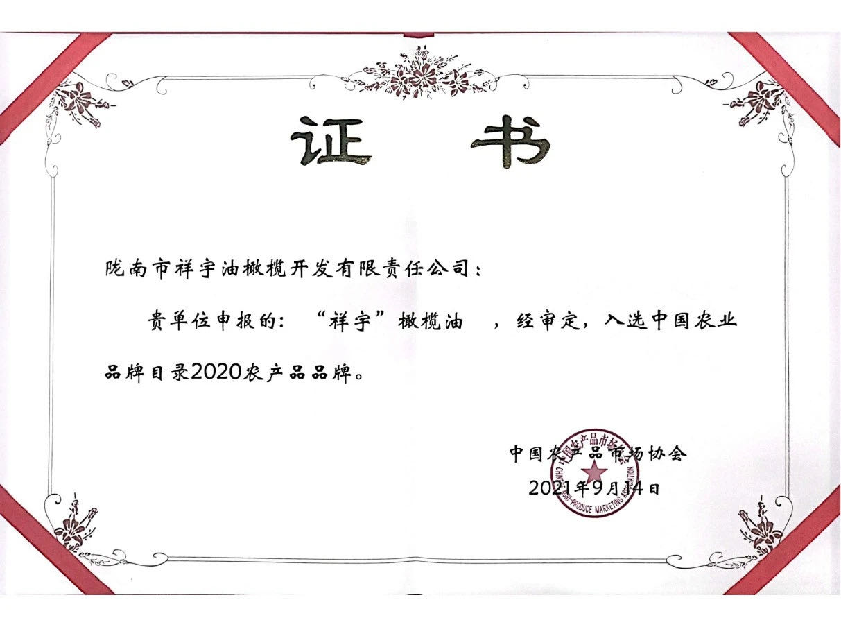 祥宇橄欖油入選中國(guó)農(nóng)業(yè)品牌目錄2020農(nóng)產(chǎn)品品牌!