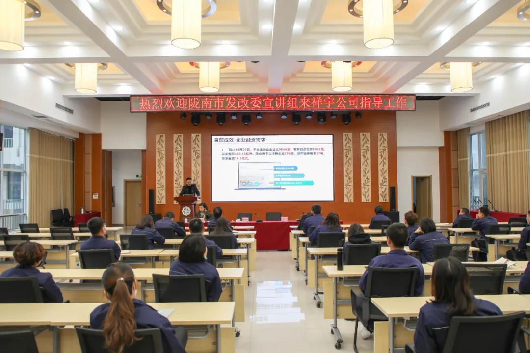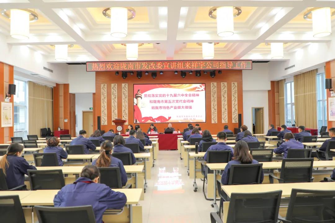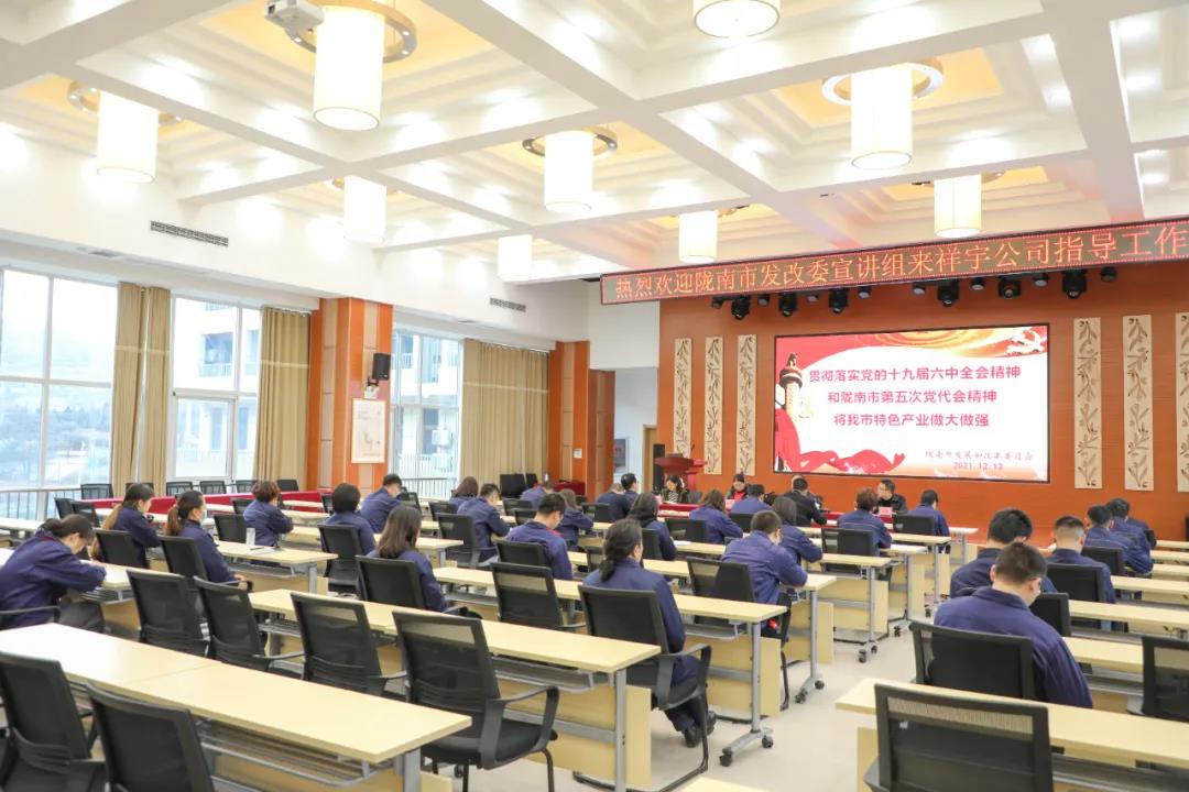 市發(fā)改委宣講團(tuán)走進(jìn)祥宇生態(tài)產(chǎn)業(yè)園宣講黨的十九屆六中全會及隴南市第五次黨代會精神。