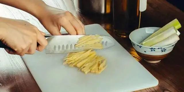 將準備好的原材料切絲、切片備用。